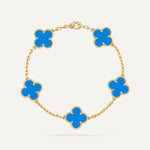 The 5 Motifs Clover Bracelet features a graceful line of clover silhouettes, each symbolizing luck, love, and elegance. Crafted with care and detailed with luminous finishes, it's a timeless piece that wraps the wrist in beauty and meaning.