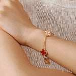 The 5 Motifs Clover Bracelet features a graceful line of clover silhouettes, each symbolizing luck, love, and elegance. Crafted with care and detailed with luminous finishes, it's a timeless piece that wraps the wrist in beauty and meaning.