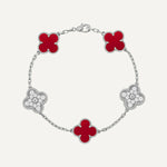 Clover 5 Motifs Two Tone Scarlet Diamond Bracelet