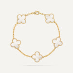 The 5 Motifs Clover Bracelet features a graceful line of clover silhouettes, each symbolizing luck, love, and elegance. Crafted with care and detailed with luminous finishes, it's a timeless piece that wraps the wrist in beauty and meaning.