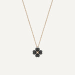 The Latisha Black Flower Pendant merges edgy sophistication with delicate design. Its jet-black petals create a striking contrast, capturing light and attention with every movement. Perfect for those who love jewelry that’s both mysterious and unforgettable.